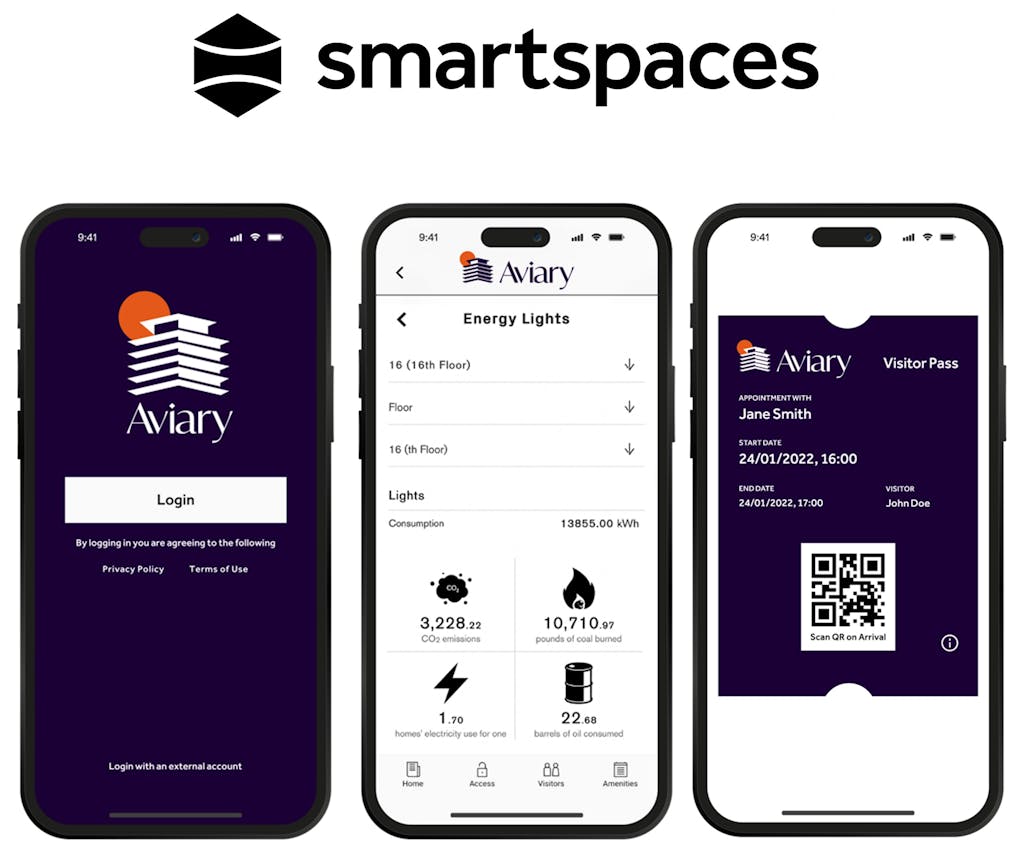 Smart Spaces has installed a smart platform for Aviary which not only provides the softer services for occupiers such as a community via a building social media platform, but also allows us to manage more efficiently some of the harder services such as access into buildings and energy saving through integrated building intelligence.